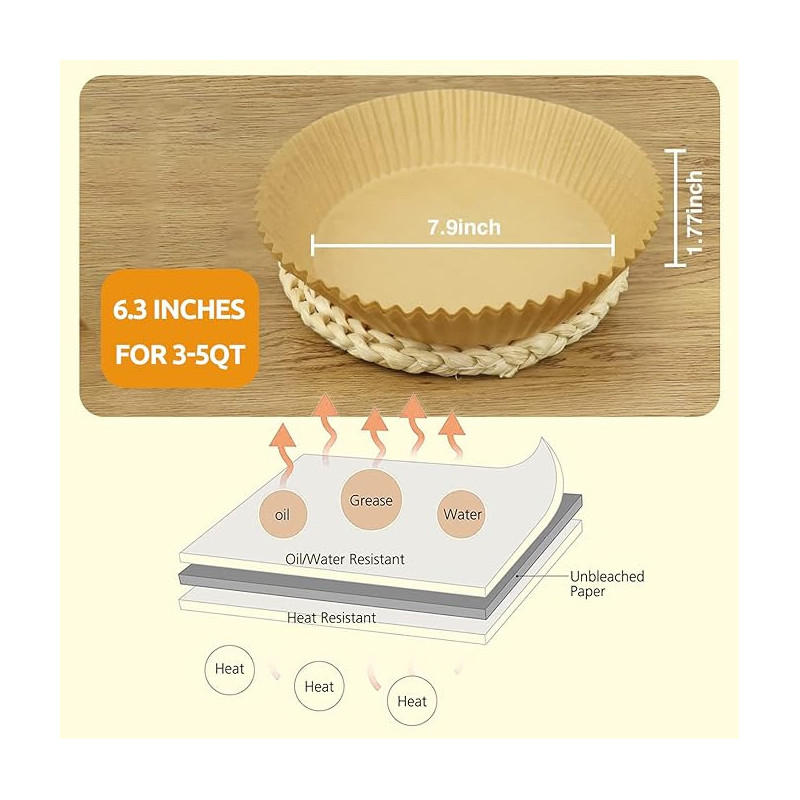 El papel de horno para freidora de aire es un accesorio práctico y resistente al calor, diseñado para facilitar la cocción sin ensuciar el aparato. Su material antiadherente evita que los alimentos se peguen, reduciendo la necesidad de aceites y grasas. Es ideal para mantener la freidora limpia, prolongando su vida útil y ahorrando tiempo en la limpieza. Apto para altas temperaturas, garantiza una cocción uniforme y segura en cada uso.