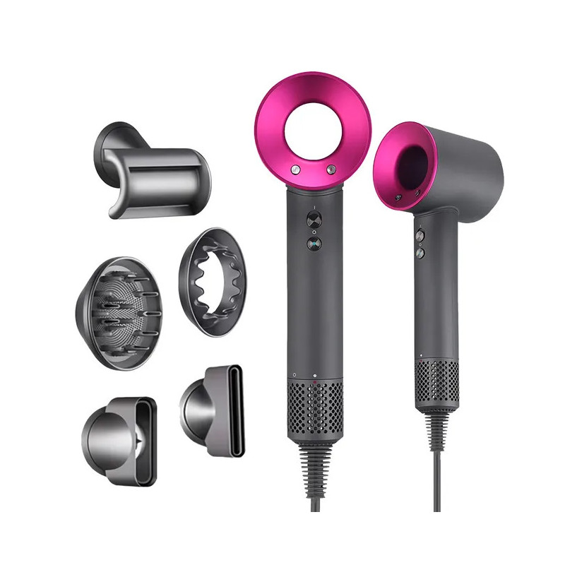 Disfruta de un secado de salón en casa con este secador iónico tipo Dyson, la combinación perfecta de tecnología y estilo para un cabello impecable.